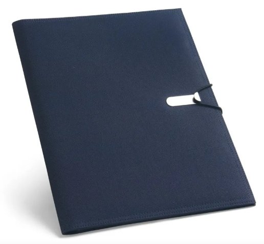 Pasta A4 em 600D. Contém bloco: 20 folhas pautadas. Imagem meramente ilustrativa, esferográfica não inclusa. Tamanho